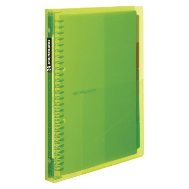 ●本体色(軸色):グリーン●外寸:縦276×横218mm●背幅:27mm●リング内径:20mm●穴数:26穴●適正収容:100枚●材質:表紙=PP,リング=ABS●ルーズリーフ10枚,5山インデックス付●※収容枚数は一般的なコピー用紙を綴じた場合の枚数です。綴じ厚10mmで約100枚の書類を収容できます。●入数:1冊●本体サイズ(mm):276X217X28●規格:B5 26穴 リング内径20mm●材質:表紙素材:PP●JANコード:4979093615636