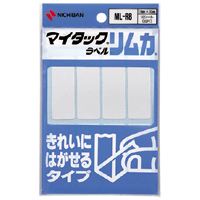 ●「ニチバン マイタックラベルリムカ 一般無地ラベル ML-R8」は、粘着剤付きで、そのまま貼れて、はがしたい時にきれいにはがせるタイプのラベルです。「ニチバン マイタックラベルリムカ 一般無地ラベル ML-R8」は、粘着剤付きで、そのまま貼れる便利なラベル、きれいにはがせるタイプです。ラベルをはがす際、のり残りが少なく相手も傷めず、ラベルがきれいにはがせるので安心です。はがしたあとがきれいです。プリンタでは使用できません。8片×10シート入りの80片入り、白無地です。ファイル、資料、スクラップ、備品の分類や見出し表示ラベルへの使用に便利です。店頭、家具、引越し等の表示ラベルやノート、学用品の名づけ表示へも使用できます。