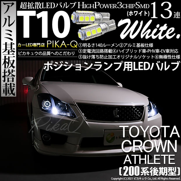 トヨタ クラウンアスリート (200系 後期) 対応 LED ポジションランプ T10 13連 140lm ホワイト アルミ基板搭載 2個 車幅灯 3-A-7