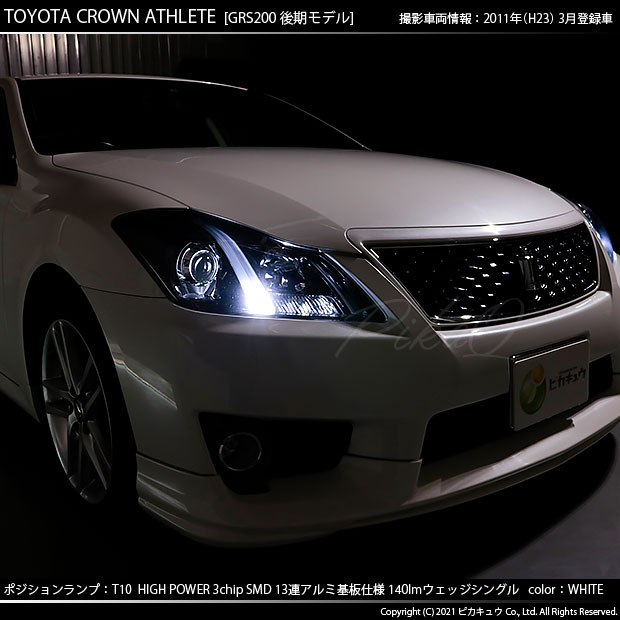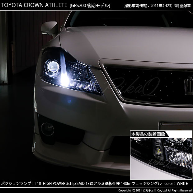 ピカキュウ,LED専門店,LEDバルブ,LED,SMD,T10,W5W,T10 HIGH POWER 3CHIP SMD 13連ウェッジシングル球,アルミ基板,140lm,長持ち,ホワイト,ポジションランプ,車幅灯,トヨタ,200系クラウン,クラウン,アスリート,TOYOTA,CROWN ATHLETE,GRS200,後期