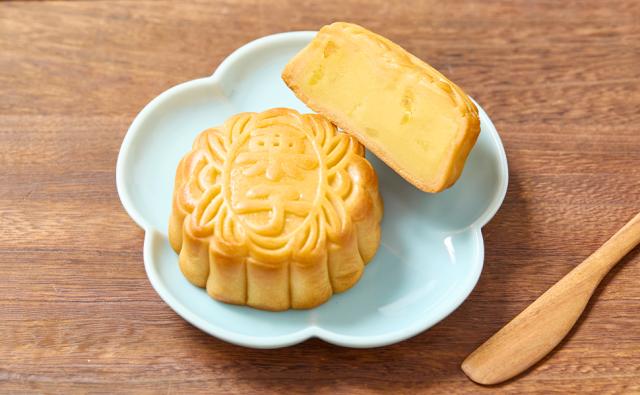 砕いた栗を丸ごと一個分練り込み、なめらかな栗あんが口いっぱいに広がる、当店人気No.1の月餅です。
