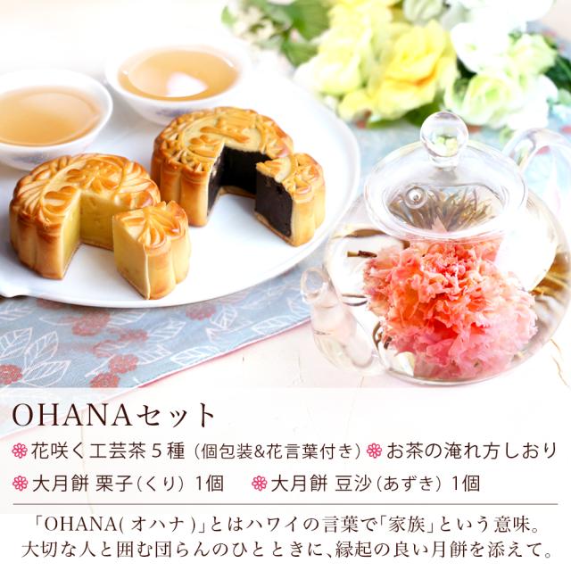 リムテー ギフト カーネーション 花さく 花茶 工芸茶5種 月餅 大月餅2種 詰め合わせ OHANAセット お菓子 スイーツ プレゼント フラワー 横浜中華街 ジャスミン茶 送料無料 誕生日