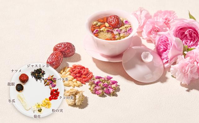 ナツメ、クコの実、松の実、冬瓜、龍眼の実を美味しくお召し上がりいただけます。