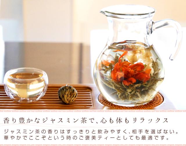 | 商品説明 | 1.それは芸術的な花咲くお茶。コロンとした茶葉にお湯を注ぐと徐々に開いてゆく芸術的な花たち。まるで魔法のような、おとぎ話のような、不思議な時間を作り出す。 2.ジャスミン茶ベースの工芸茶。ジャスミンの香りがあなたのリラックスタイムを華やかに彩ってくれます。たまには自分にもご褒美タイムを。 3.工芸茶1粒に対し約400mlの熱湯をかけ、2〜3煎飲んでいただけます。 |