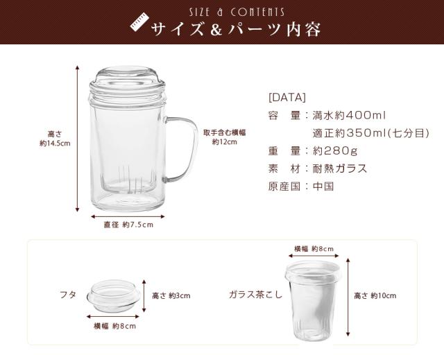 | セット内容 | 茶こし付き耐熱ガラスマグカップ 1個 |