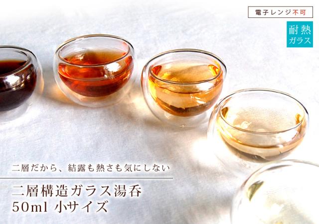 リムテー 二層構造ガラス湯呑 小サイズ 50ml(満水:約50ml 適正:約30ml) 1客