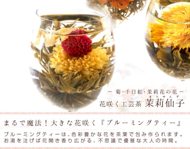 | 商品説明 | 1.それは芸術的な花咲くお茶。コロンとした茶葉にお湯を注ぐと徐々に開いてゆく芸術的な花たち。まるで魔法のような、おとぎ話のような、不思議な時間を作り出す。 2.ジャスミン茶ベースの工芸茶。ジャスミンの香りがあなたのリラックスタイムを華やかに彩ってくれます。たまには自分にもご褒美タイムを。 3.工芸茶1粒に対し約400mlの熱湯をかけ、2〜3煎飲んでいただけます。 |