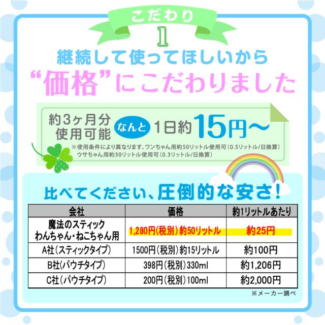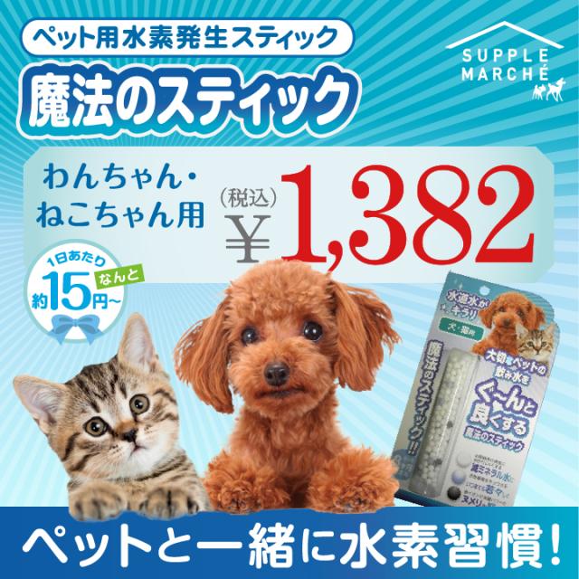 容器がプラにパワーアップ ペットの水素水【送料無料】お水の硬度も下げる!ペット用水素発生スティック 魔法のスティック 1本入50L用(約3ヶ月)犬 猫 ワンちゃん