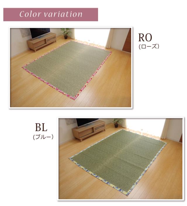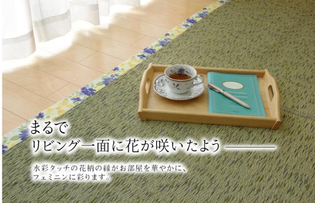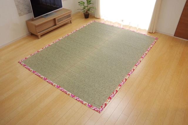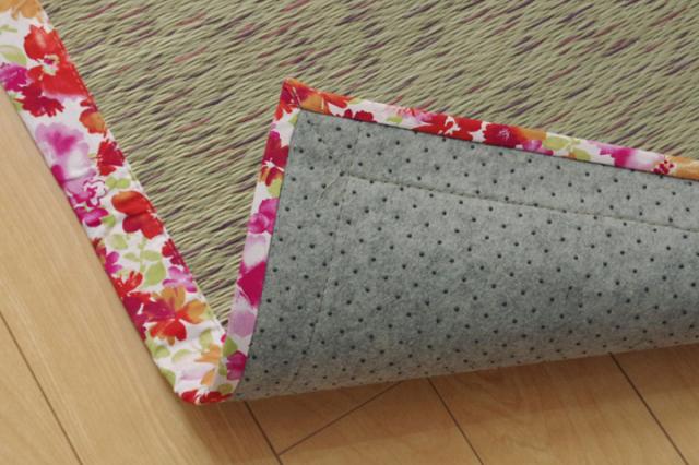 | い草ラグカーペット かわいい花柄 『NSフレグランス』(裏面:滑りにくい加工) 約191×191cm |