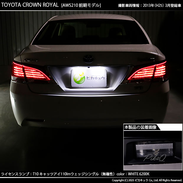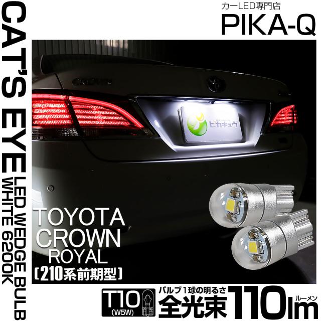 トヨタ クラウンロイヤル ハイブリッド (AWS210系 前期) 対応ライセンスランプ用LED T10 Cat's Eye LED BULB 全光束110ルーメン LEDカラー:ホワイト6200K 無極性 1セット2個入