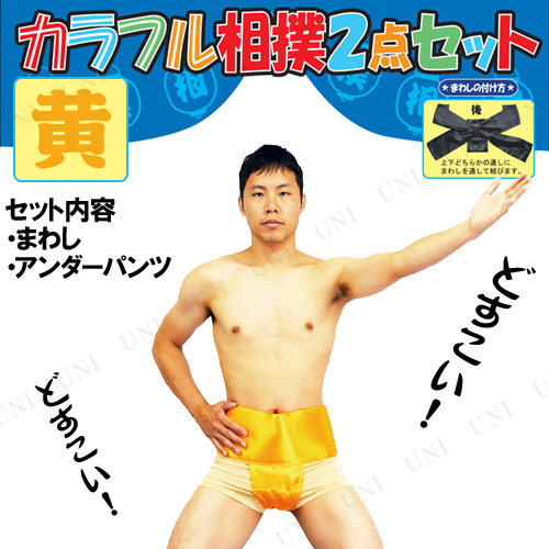 #おもしろ衣装(パーティー・宴会),男性用,メンズ,ハロウィン,コスプレ,大人用,パーティーグッズ,余興,お相撲さん,関取,すもう,仮装グッズ,フル仮装,パーティグッズ,衣服,なりきり,イベント,出し物,文化祭,学園祭,飲み会,忘年会,新年会,歓迎会,歓送迎会,結婚式,運動会,体育祭,仮装マラソン,演劇,全身仮装,仮装用品,仮装雑貨,本格的,ハロウィーン,halloween costume,カラフル相撲2点セット 黄,15706skey 4949028114718