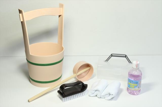 | お墓参磨き用セットとなります。セット内容は、プラスチック製手桶・柄杓・墓石用洗剤・ブラシ・タオル2本。便利なケース入りとなります。(手桶セットは除く) 柄杓は木製でお水をすくう部分の合のみ樹脂製なのでとても実用的です。 | |||