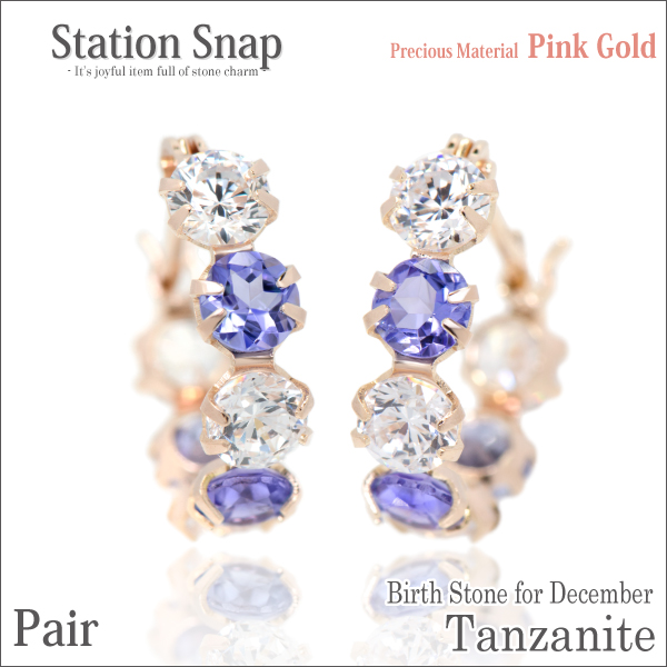 タンザナイト ピアス 送料無料 K10 ピンクゴールド 5Aキュービックジルコニア 3mm ステーションスナップ 両耳ペア 宅配便