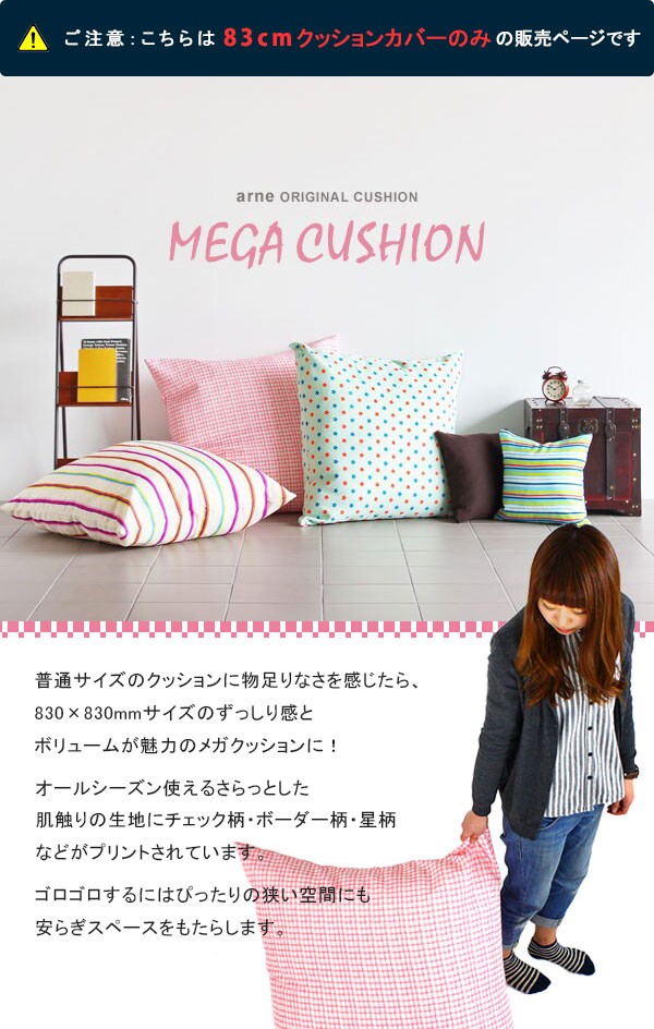 【クッションカバーのみ】 クッションカバー 83×83 83cm ジャンボクッション 北欧 おしゃれ 大きい インテリア カバー クッション 正方形 arne △