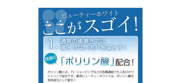 薬用ビューティーホワイト 10g 歯の再石灰化を促し、黄ばみをなくして白く輝く歯へ。大人気の注目成分「ポリリン酸」配合!