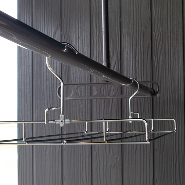 両端にフックが付いているため、物干し竿にかけるとバランスがとれて安定感があります。フックは逆向きに付いているので、風をうけても下に落ちにくく安心です。