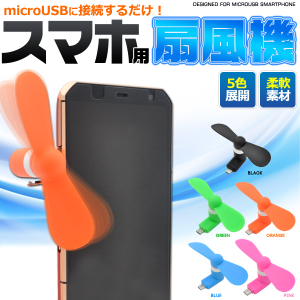 ミニ扇風機 スマートフォン用 microUSBに接続するだけ コンパクト扇風機 手の平サイズ スマホ 扇風機 ファン 小さい 小型 かわいい 送料無料