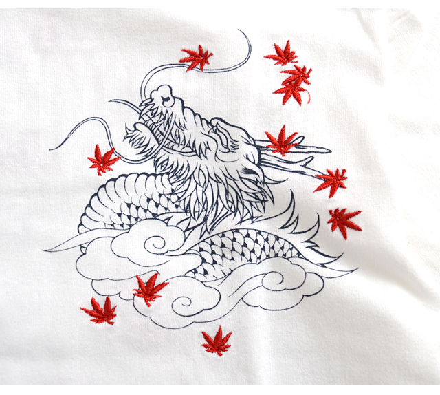 フロント左胸には、ワンポイントで龍をデザイン。