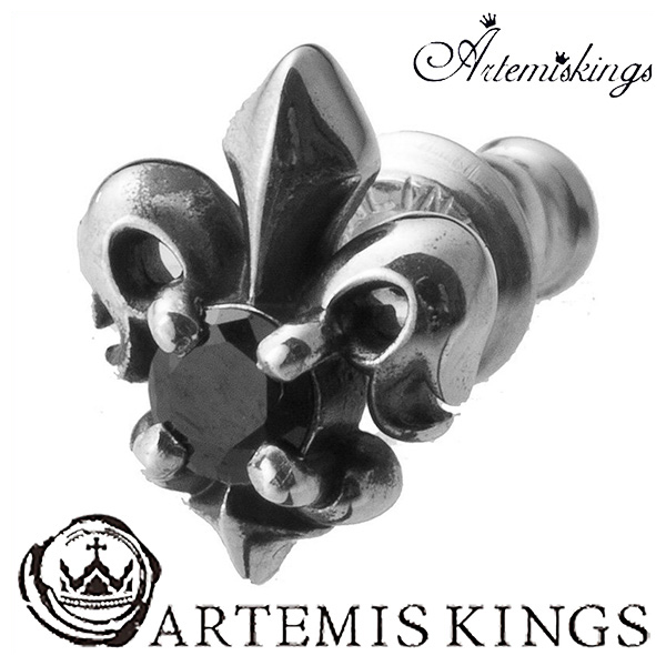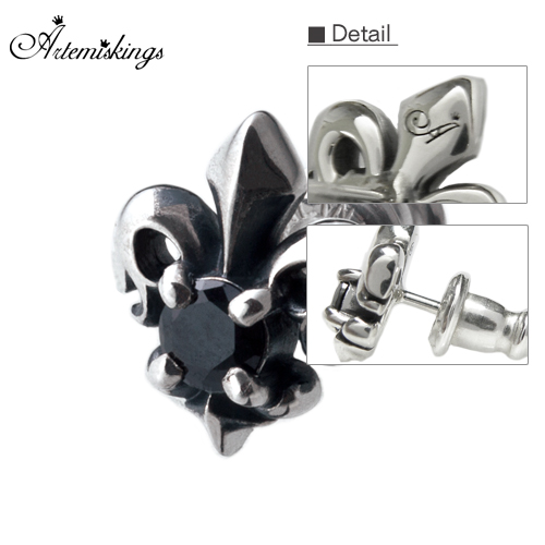 【アルテミスキングス】ストーン リリィ スタッドピアス BK(1P 片耳用)シルバー925 メンズ 男性用 ピアス 片耳 ブランド アルテミスクラシック