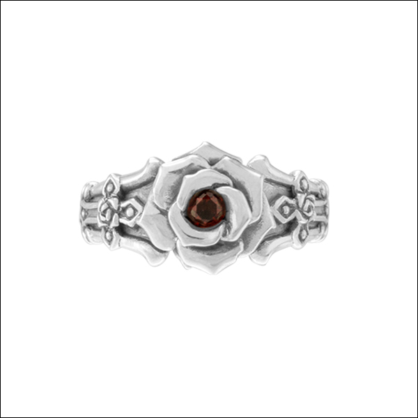 大振りな深紅のガーネットを施したローズデザインのリング。