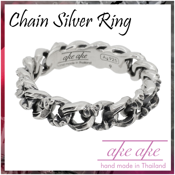 【AKE AKE】チェーン シルバーリング 12〜20号/送料無料 シルバー925 シルバーリング メンズ シルバー 指輪 ブランド