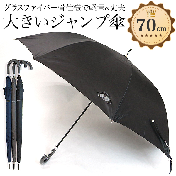 傘 メンズ 大きい長傘 雨傘 ワンタッチ ジャンプ傘 男性 グラスファイバー おしゃれ 軽量 70cm