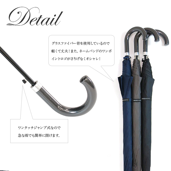 グラスファイバーを採用した、軽くてしなやかで壊れにくいメンズ用の大きい傘。