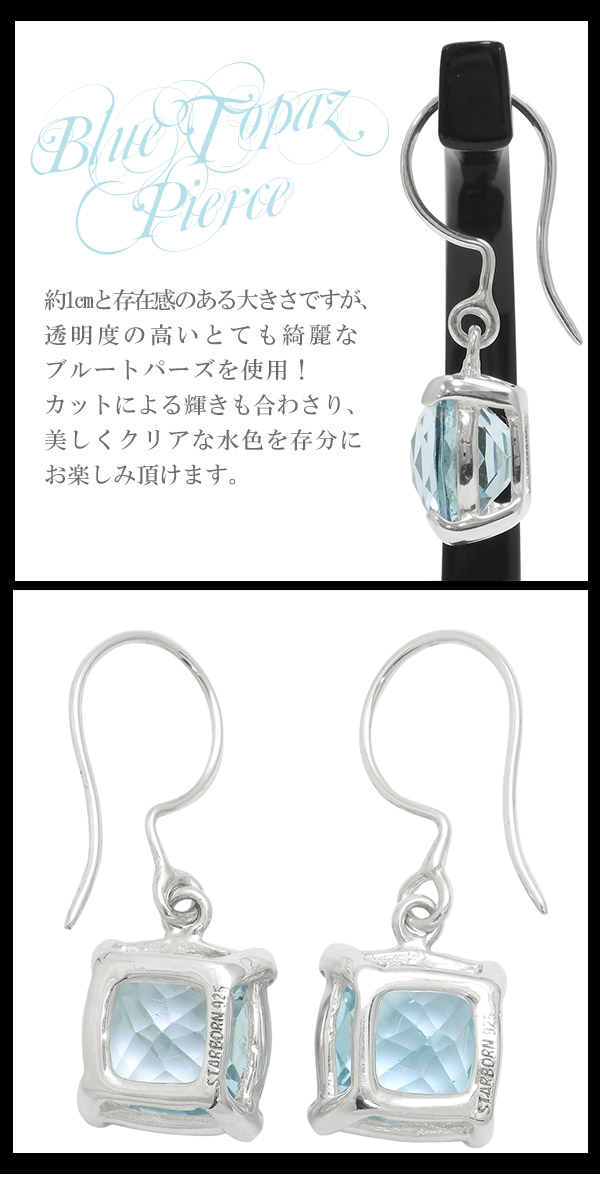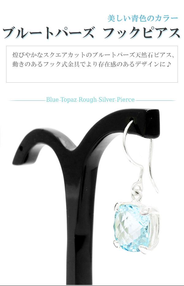 【送料無料】ブルートパーズ スクエア カット フック シルバーピアス (2P 両耳用)