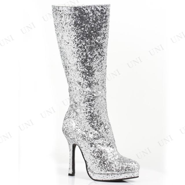 コスプレ 仮装 グリッターブーツ シルバー 24cm Size 7 Ellie Shoes プチ仮装 コスプレ小物 小道具 靴 ブーツカバー ハロウィン サイドファスナー