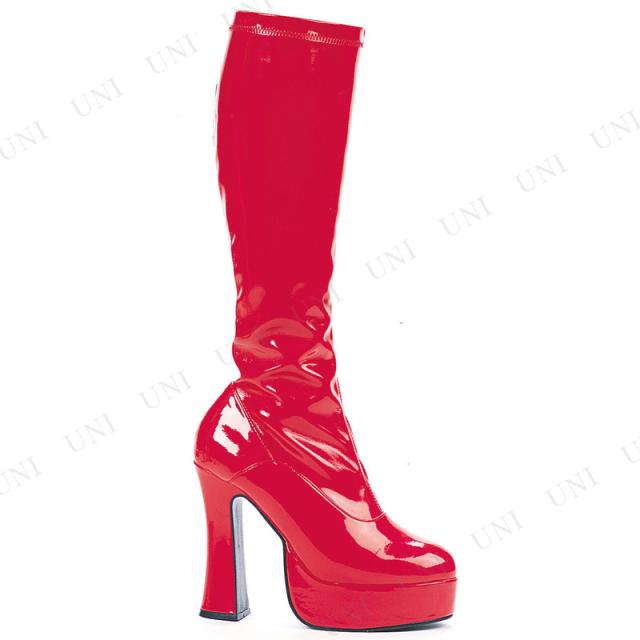 コスプレ 仮装 エナメル ニーブーツ レッド 24cm Size 7 Ellie Shoes プチ仮装 コスプレ小物 小道具 靴 ブーツカバー 内側ファスナー 部分洗い可