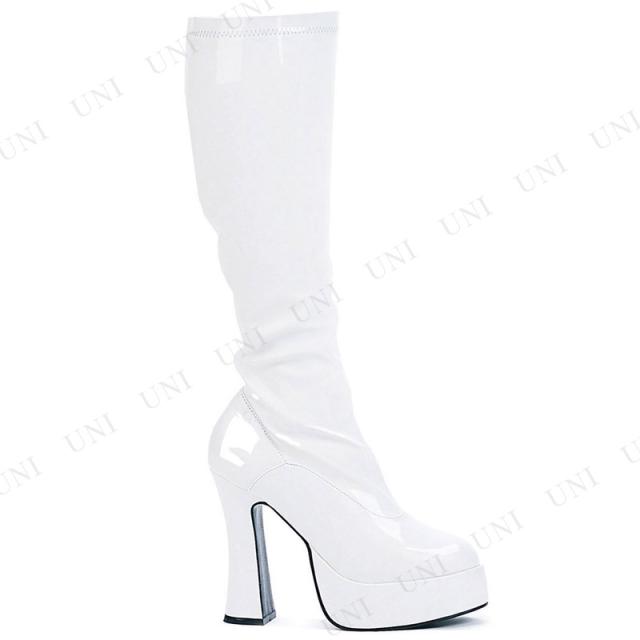 コスプレ 仮装 エナメル ニーブーツ ホワイト 25cm Size 8 Ellie Shoes プチ仮装 コスプレ小物 小道具 靴 ブーツカバー 厚底 ジッパー開き