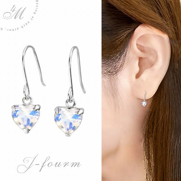 ブルームーンストーン ピアス 送料無料 Pt900プラチナ 4mm ハートシェイプ ハートフック 両耳ペア