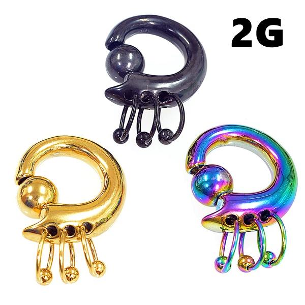 トライバルタイプ 3連ビーズ キャプティブビーズリング ロブピアス【2G】サージカルステンレス