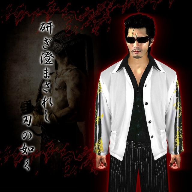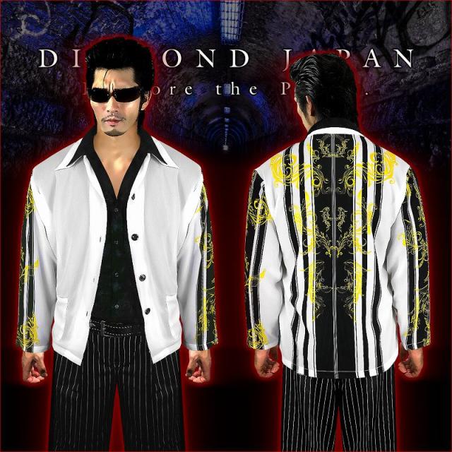 送料無料 ポイント2倍 DJ-014白 長袖シフォンシャツ フローラル バロック柄 派手 夏物 大きいサイズ ヤクザ ちょい悪 悪羅悪羅系オラオラ系 悪党の店 バースジャパン BIRTHJAPAN