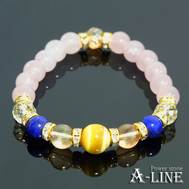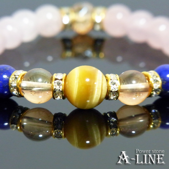 パワーストーン ブレスレット AAAゴールデンタイガーアイ10mm・AAラピスラズリ8mm&ローズクォーツ PW-3002