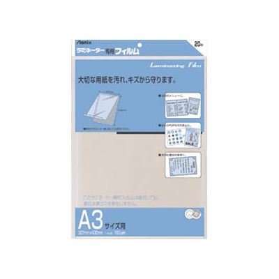 ●W307×H430mm[商品スペック]内訳:内容量:20枚[商品詳細]「Asmix ラミネーター専用フィルム A3サイズ用 20枚 BH-115」は、お店のメニューやカタログ、POPなどの保護に適したラミネートフィルムです。汚れ、キズから守ります。 原産国 中国