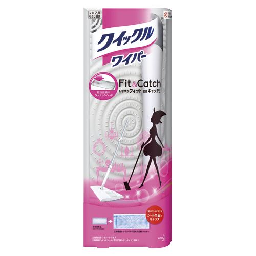 【フロア用そうじ道具】花王 クイックルワイパー ●クッションヘッドが、床面にしっかりフィットして、シート全面でホコリ・髪の毛をたっぷり捕集します。●ヘッドの厚みが、従来比約40%減、掃除機の入りにくいわずか3cmのすき間にも入ります。●ラクラク回転ヘッドが軽い操作感を実現、片手でもスイスイ、小回りが利きます。●立てかけても倒れにくいラバーキャップ付きです。●インテリアにも合うスタイリッシュなデザインです。【内容量】・グリップ…1本・パイプ(柄)…3本・ヘッド…1個・シート…2種[クイックルワイパー 立体吸着ドライシート](2枚入)…1袋[クイックルワイパー 立体吸着ウエットシート](2枚入)…1袋【用途】床(フローリング・ビニール)・畳・壁・天井等【道具の材質】パイプ(柄): アルミ、ポリカーボネート、ポリアセタールグリップ: ポリプロピレン、スチレン系エラストマー、ポリアセタール、ポリカーボネートヘッドプレート部: ポリカーボネート、ABS樹脂、ポリエチレン、ポリアセタール、発泡ウレタン、ポリプロピレンクッション部: スチレン系エラストマー
