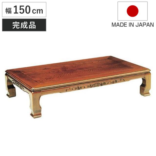 座卓 幅135cm 風月 木製 ローテーブル 完成品 日本製 ( 座卓テーブル 和風座卓 座敷机 和室 畳 座敷 長方形 天然木 ケヤキ 突板仕上げ 欅 リビングテーブル センターテーブル テーブル 机 古民家 純和風 彫刻入り )