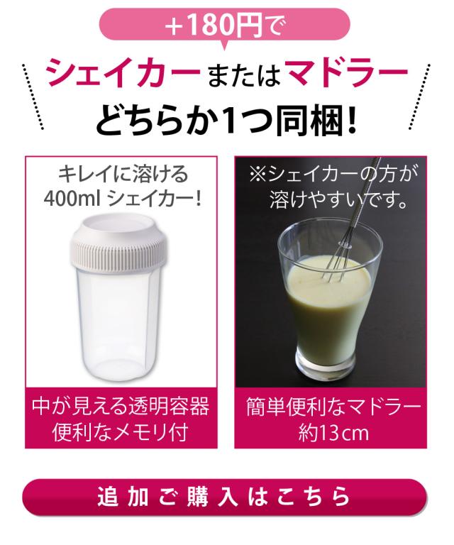 ・シェイカーに豆乳や牛乳を入れた後、本品を入れてシェイクすると、さらにまろやかになっておいしくお召し上がりいただけます。