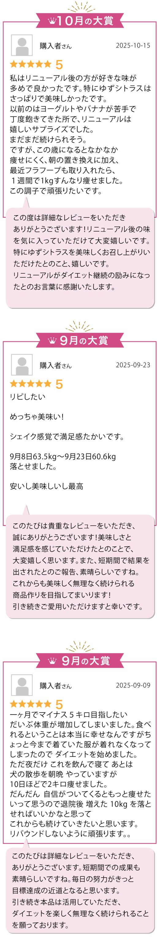 - 初めて購入しました。夕食を置き換えています。最初は物足りなさを感じていますが徐々にお腹も慣れてきたのか空腹感をあまり感じなくなってきました。種類によって粉っぽさを感じますがどれも味が良いので飲みにくさ...
