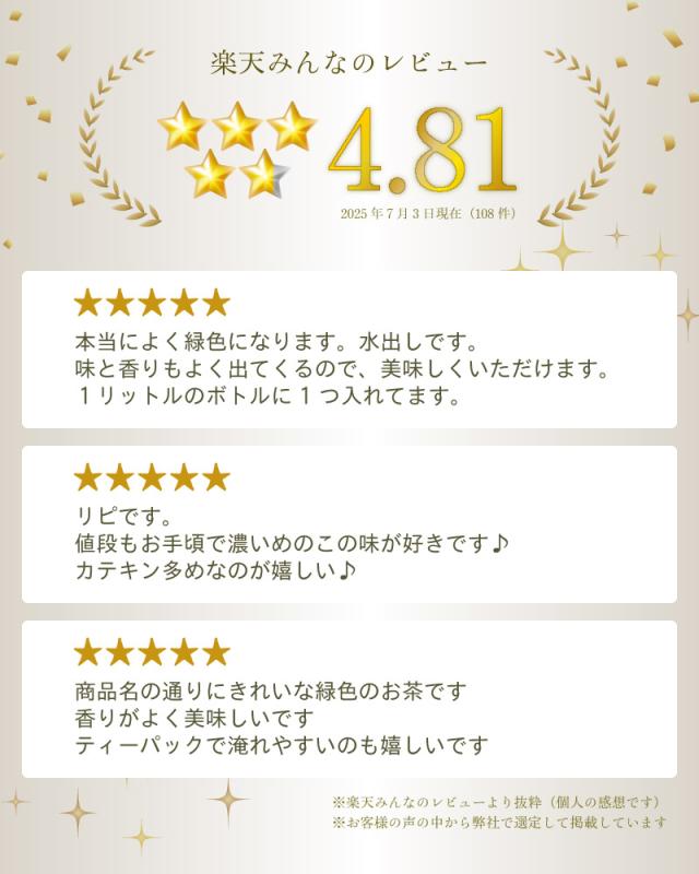 ※茶葉5gを90℃のお湯220 mLで0.5分置いてから淹れた場合 (100ml当たり)