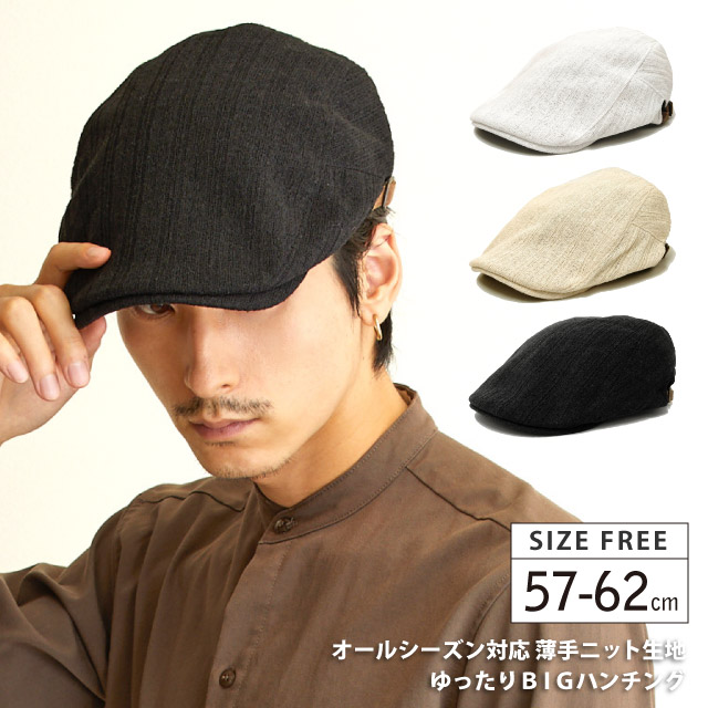 ハンチング 帽子 大きいサイズ 薄手ニット ゆったりBIGハンチング 57cm-62cm hun-542 メール便は送料無料 帽子 メンズ 大きい帽子 メッシュ 春夏 秋冬 オールシーズン 年通 サイズ調節 XL 実用的 紳士 男女兼用 カジュアル 爽やか 無地 シンプル プレゼント