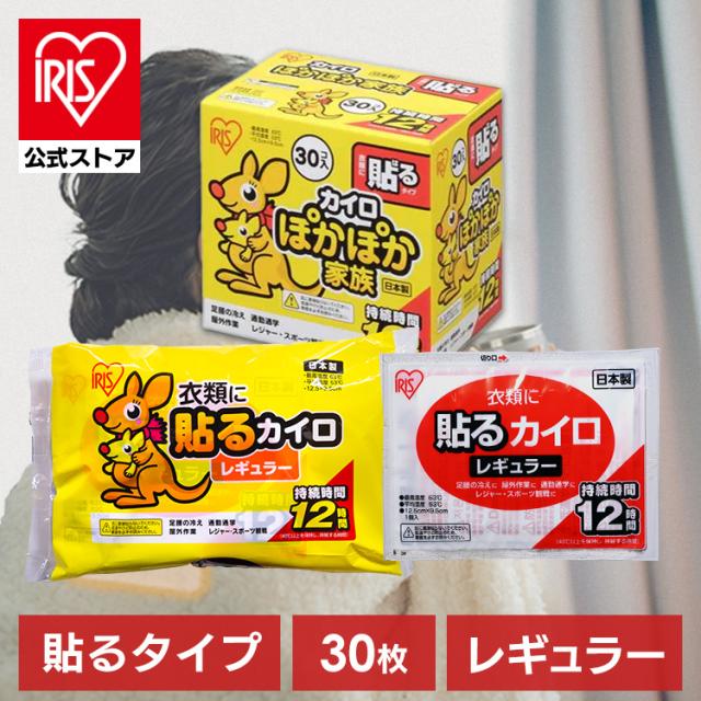 カイロ 貼る 貼るカイロ レギュラー 30枚 まとめ買い 使い捨て 12時間持続 使い捨てカイロ あったかグッズ 温活 お腹 背中 腰 防寒 寒さ対策 冷え対策 通勤 通学 アウトドア 防災 備蓄 アイリスオーヤマ ぽかぽか家族 衣類に貼るカイロ #