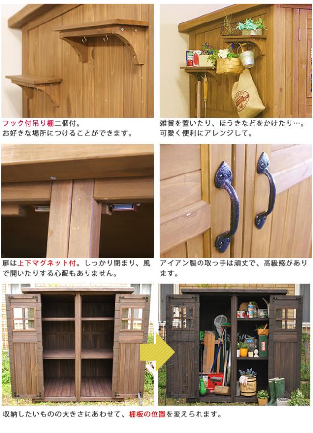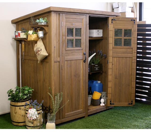物置き 木製 収納庫 ガーデニング用品 小屋 大サイズ 物置 倉庫 収納庫 天然木 木製(代引不可)【送料無料】