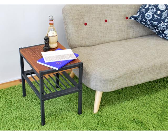 天板は四方をアイアンで縁取った、ミッドセンチュリー風のモダンなデザイン。
