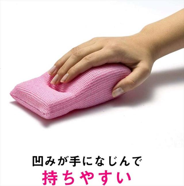 ●ハイブリッド構造で、マイクロファイバーが湯アカ、ヌメリを落とし、フィルムが石けんカス汚れをかきとります。