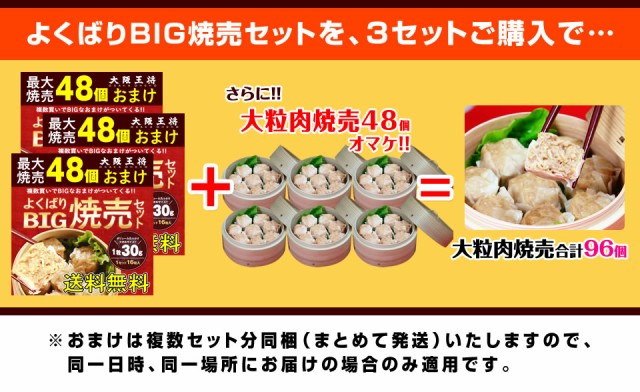 ★3セット(大粒肉焼売48個)購入・・・大粒肉焼売48個オマケ(大粒肉焼売合計96個)