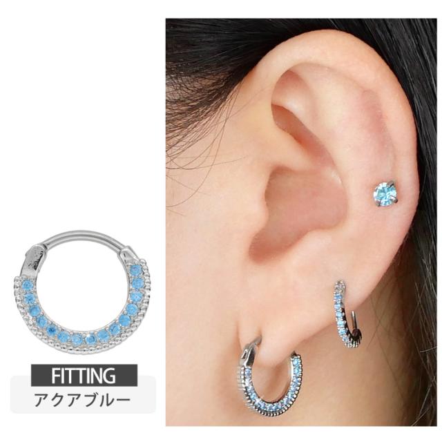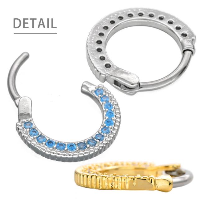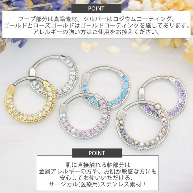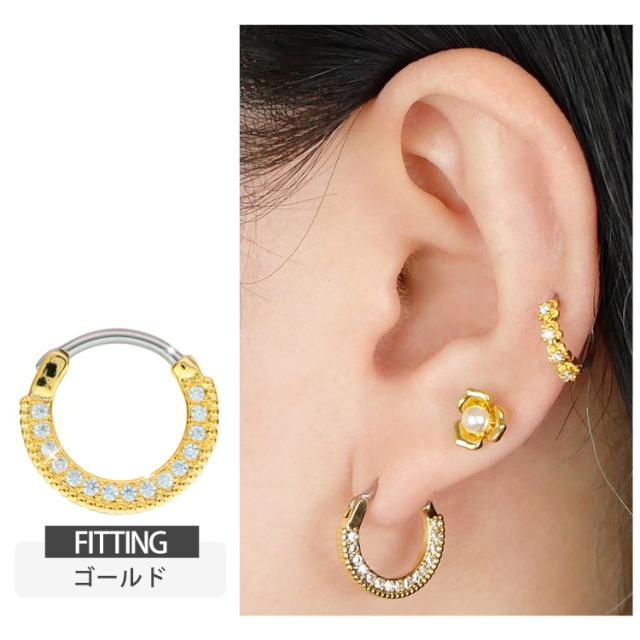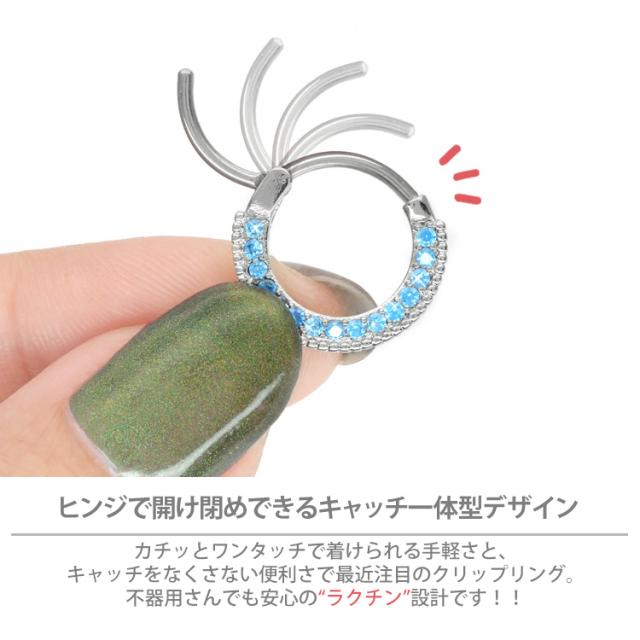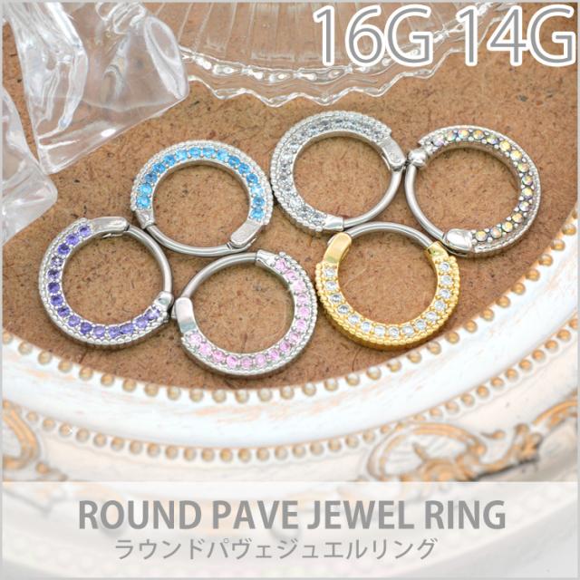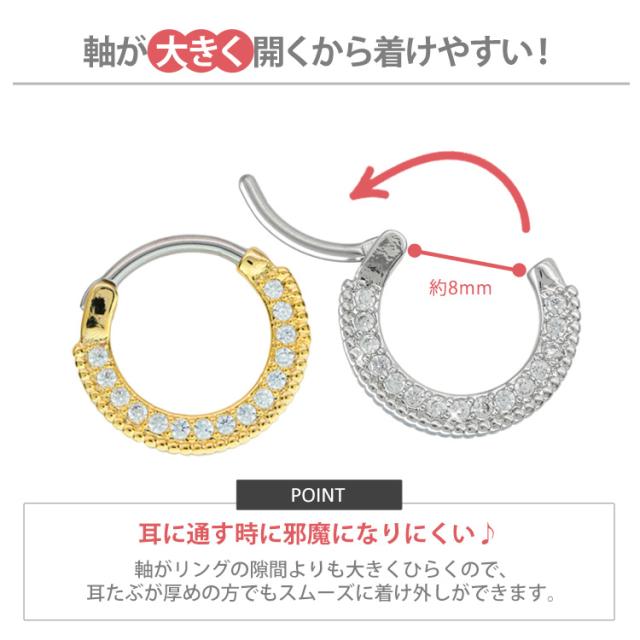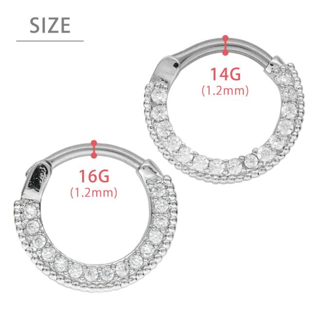 ピアス軟骨ピアス ボディピアス カチッと装着 ラウンドパヴェジュエルリング 16G 14G
