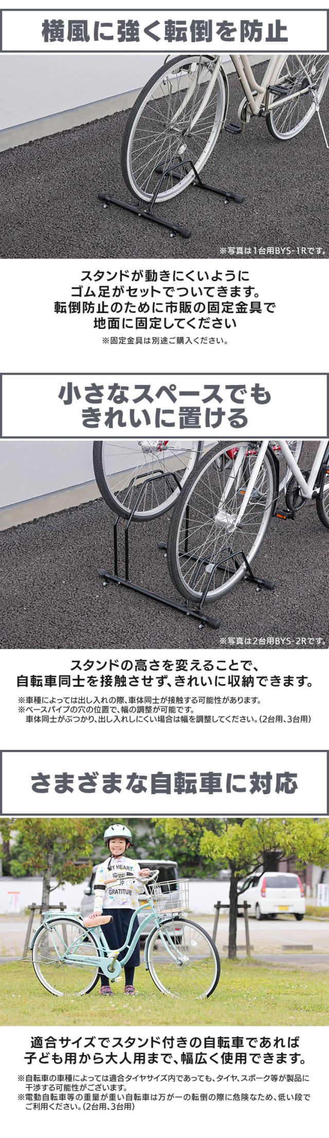 自転車スタンド 屋外 3台 倒れない ゴム足 金具で地面に固定 金具別売 横風 強風 転倒防止 高さ2段 収納しやすい 子供用自転車 大人用自転車 組み立て簡単 駐輪場 サイクルスタンド サイクルラック 自転車 スタンド アイリスオーヤマ BYS-3-R *