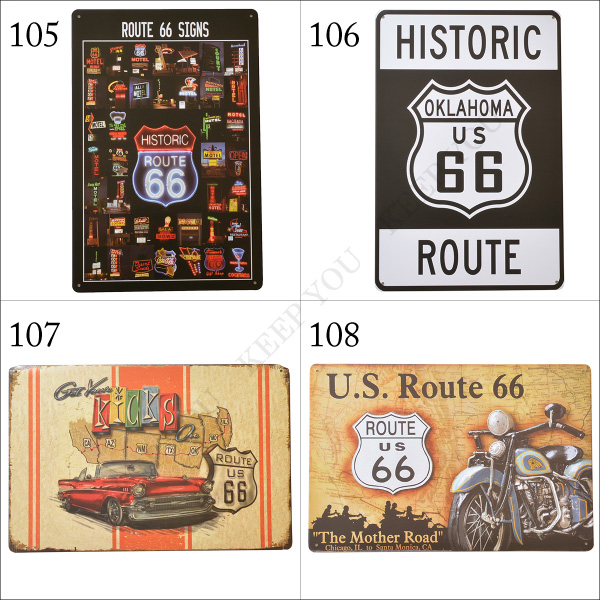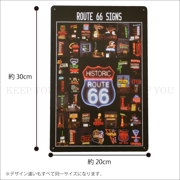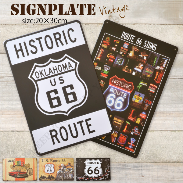【4枚までメール便280円対応】ブリキ看板 ルート66 ROUTE66 20×30cm ビンテージ メタルサインプレート ガレージ インテリア105-109┃